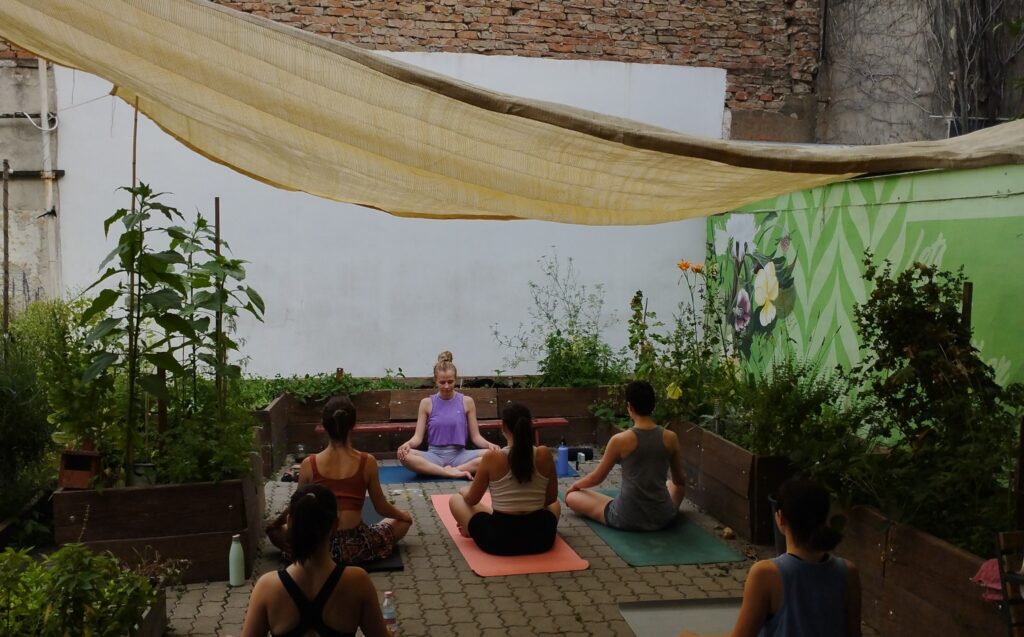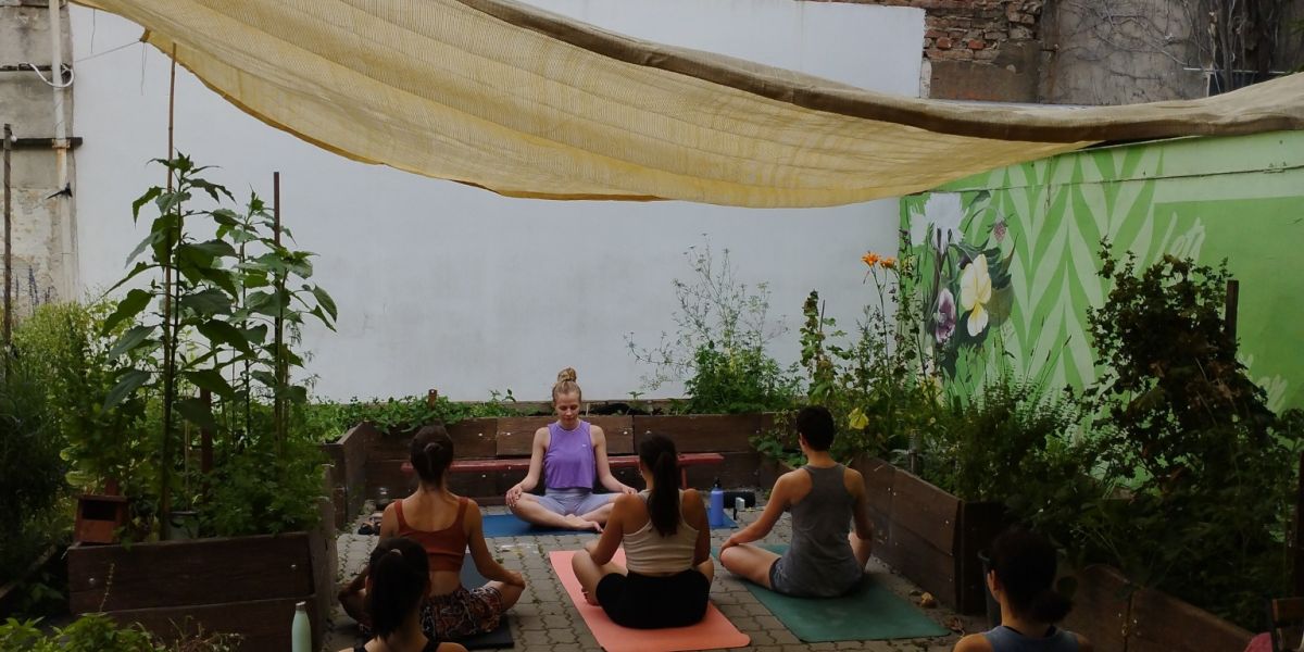 Csalár Rita jógaoktató egy vállalati önkéntes program résztvevőjeként volt először a Kisdiófa Közösségi Kertben. Annyira megtetszett neki a Kert, hogy megbeszéltük, a nyár folyamán szívesen tart nálunk jógaórákat.